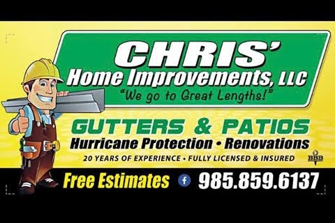 - Chris’ Home Improvements, LLC., has proudly been in business & servicing the tri-parish area for over 20 years. We do exterior home improvements specializing in gutters, patios, screen rooms &...